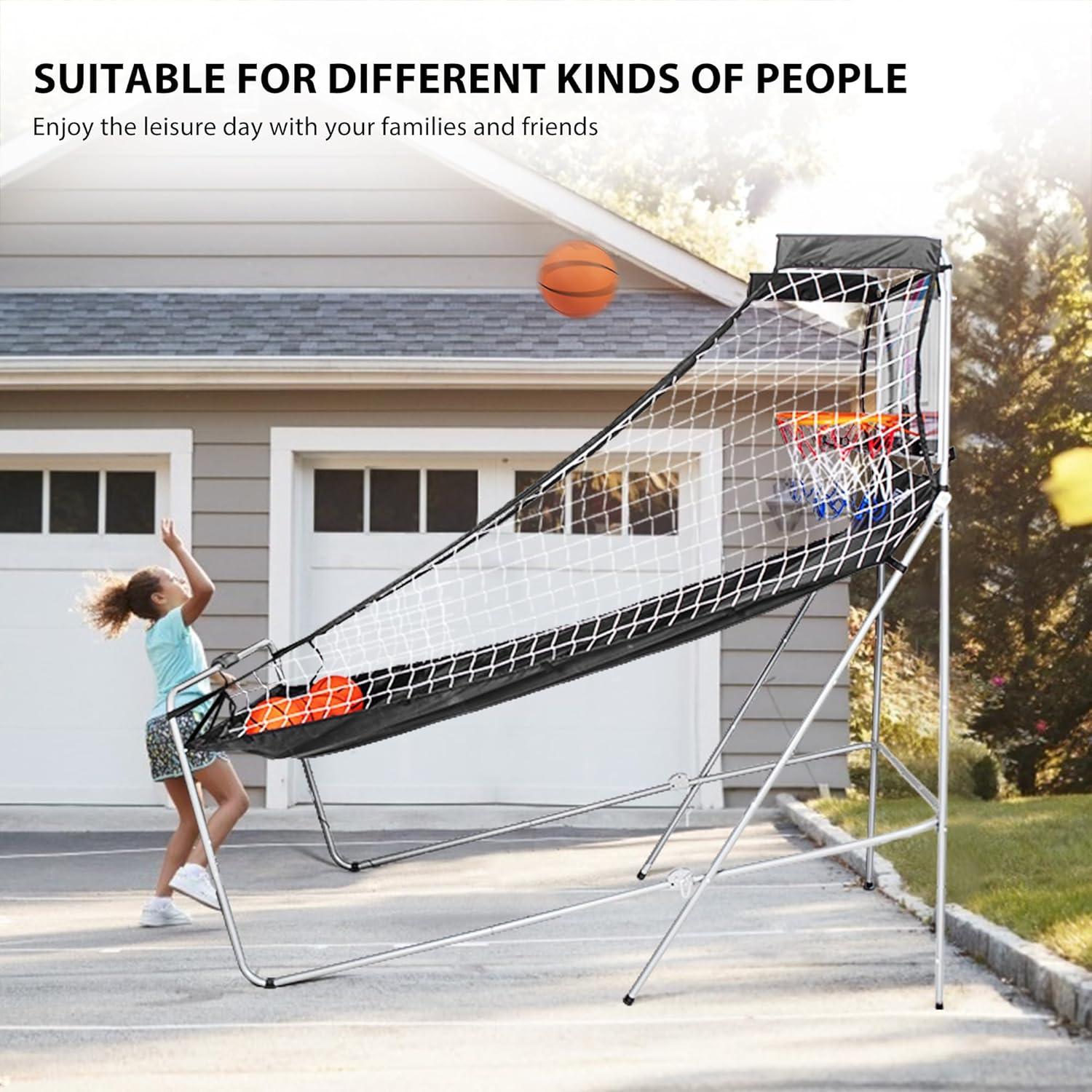 INTELLIGENT SCORING SYSTEM – The basketball arcade game is designed with an intelligent and accurate LED scoring system, which adopting infrared optical sensing technology to ensure scores accuracy; In addition, it simulates arcade voice, creates a real competitive atmosphere, and brings the perfect arcade game experience; With 3 AA batteries, you can get all of the above; Note: Batteries are not included
